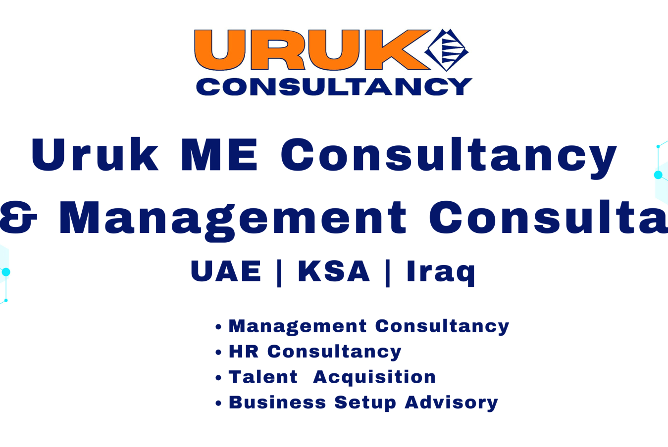 URUK ME Consultancy is a client centric advisory firm based in Dubai specializing in Management Consultancy, HR Advisory, and Talent Acquisition support for entrepreneurs and growing organizations.